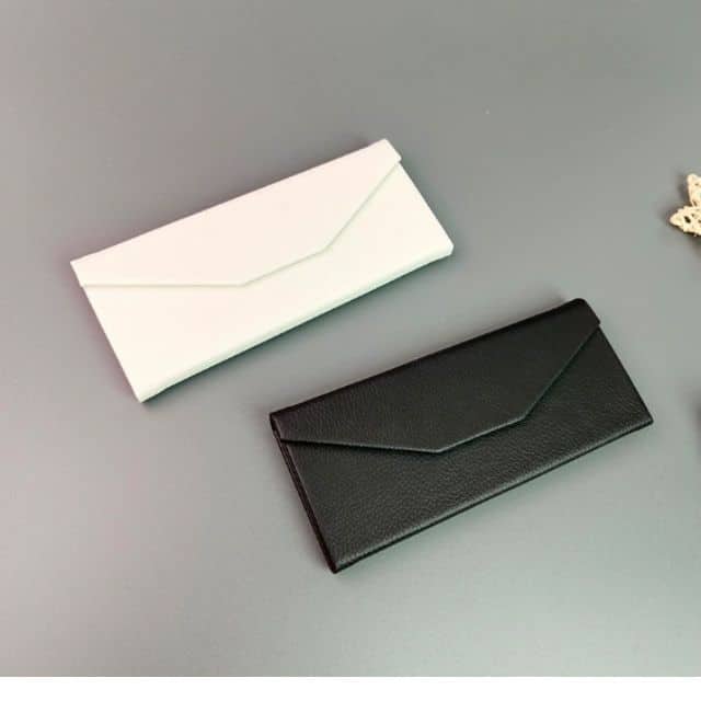 這款 摺疊眼鏡盒 採用獨特的三角形力學結構,展開時堅固抗壓,保護眼鏡;取出眼鏡後可 摺疊成扁平狀 (Fold Flat),厚度僅約 1.5cm,輕鬆放入隨身小包或褲袋。選用高級 PU 皮革 或 水洗牛皮紙 (Washable Kraft Paper) 製作,內層配備柔軟絨布,防刮防塵。